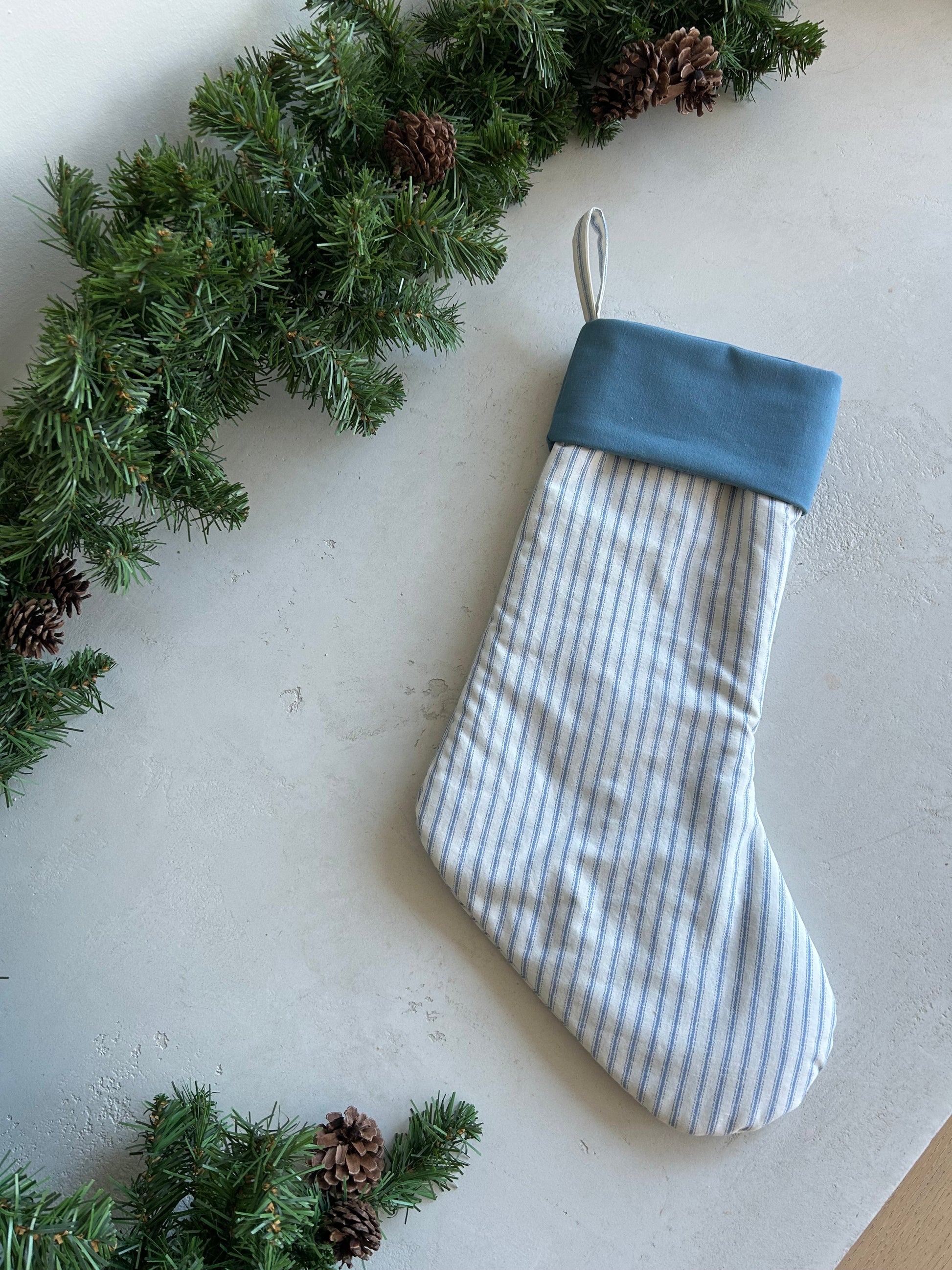 Gather Stocking- Blue Stripes with Cuff