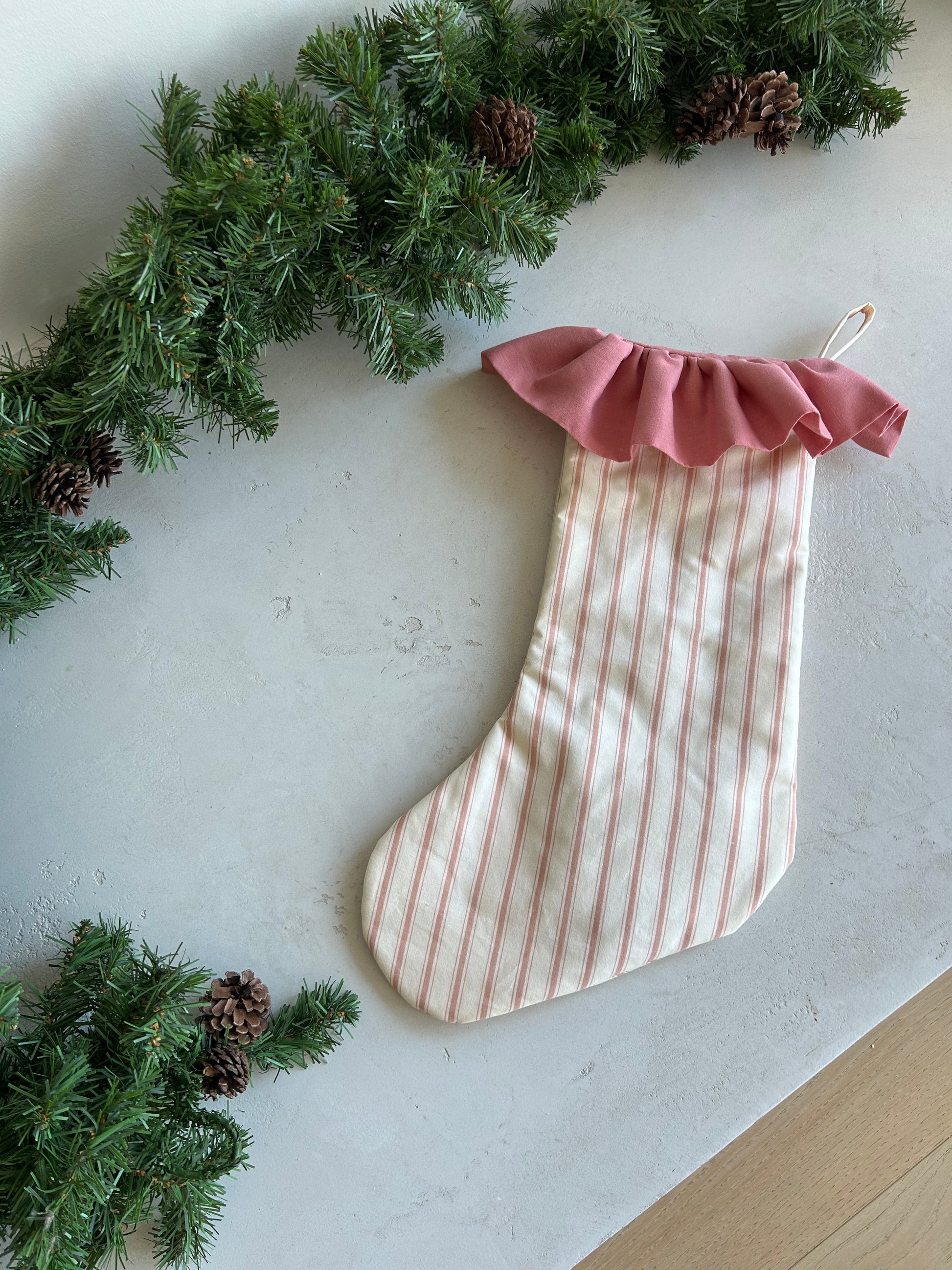 Gather Stocking- Pink Stripes with Ruffled Cuff