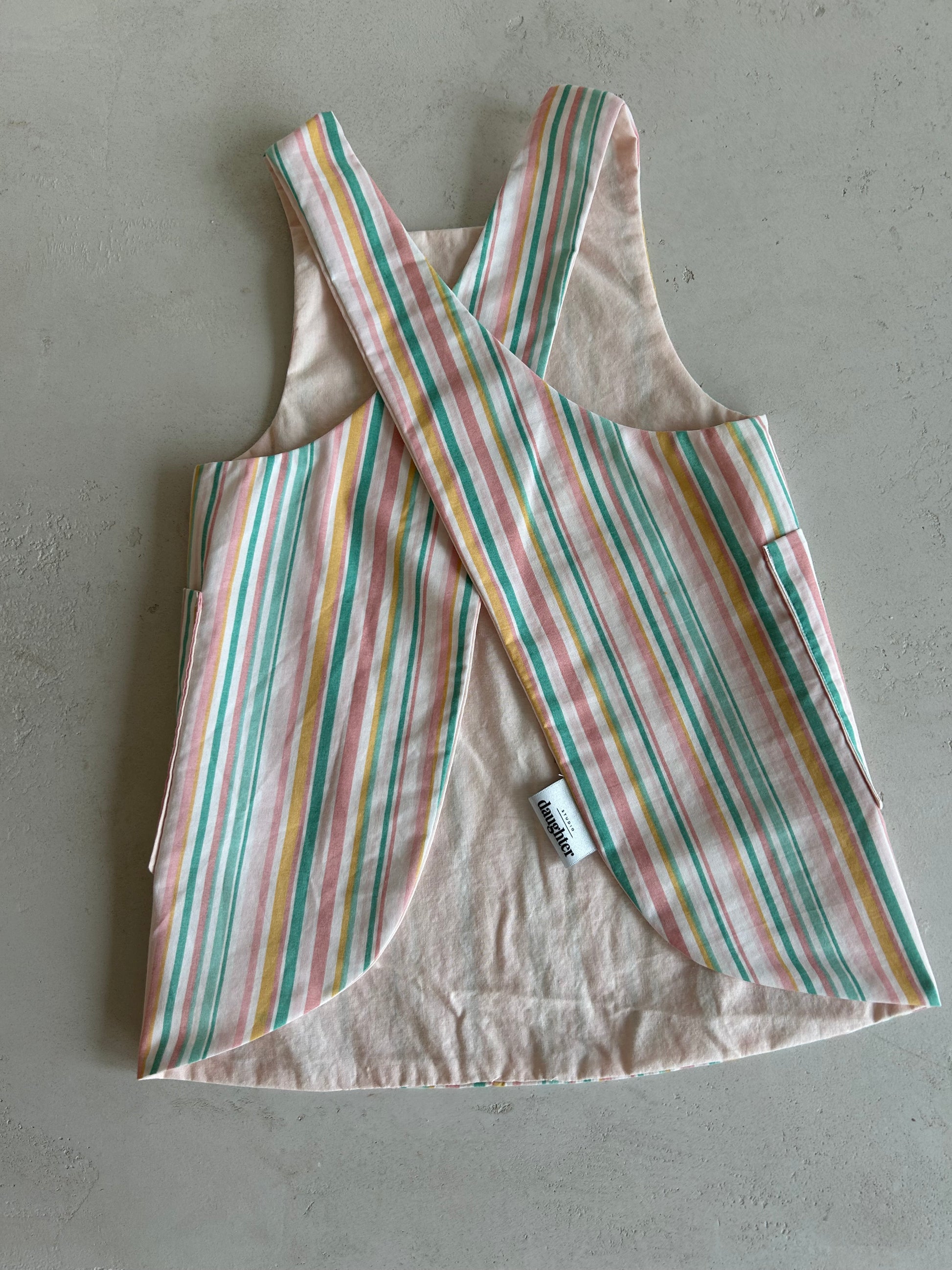 Perfect for budding chefs, mini artists, and everyday explorers, the mini maker’s apron makes messy fun easy and stylish. The comfortable cross-back design makes it easy for kids to slip on and off without any ties or fuss. Apron features two utility side pockets for tools, snacks, or treasures.